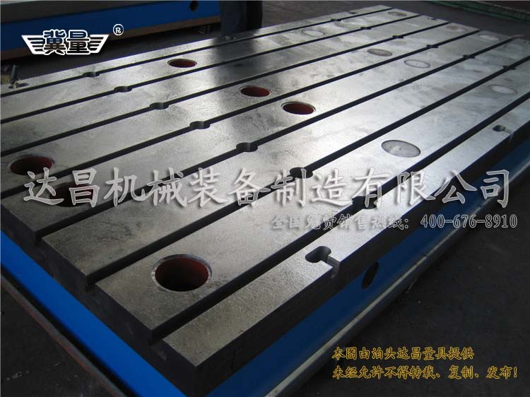鑄鐵平臺按形式可分為平面鑄鐵平臺、孔型鑄鐵平臺、槽型鑄鐵平臺。孔型鑄鐵平臺又分為條形孔、圓形孔(通孔、螺紋孔),槽型鑄鐵平臺分為V型槽、U型槽、T型槽,其中常能見到的也是應用較廣的就是鑄鐵T型槽平臺了。